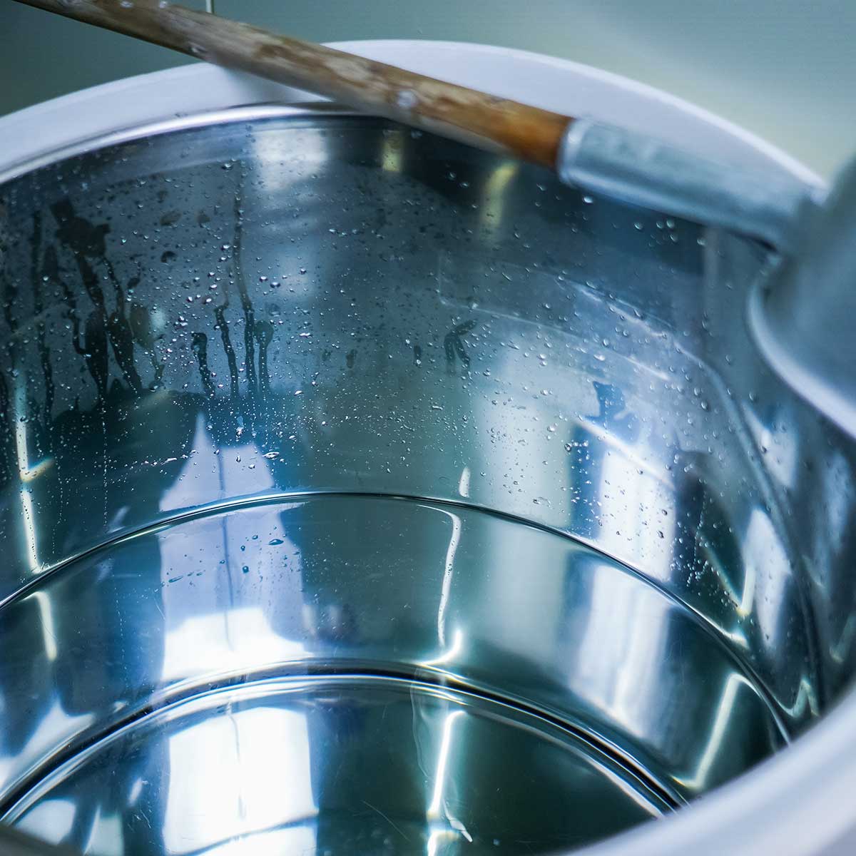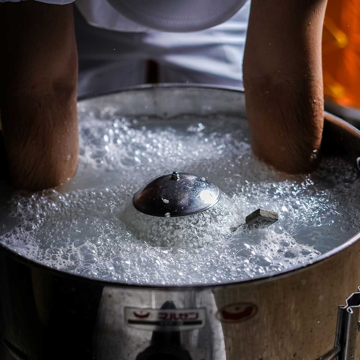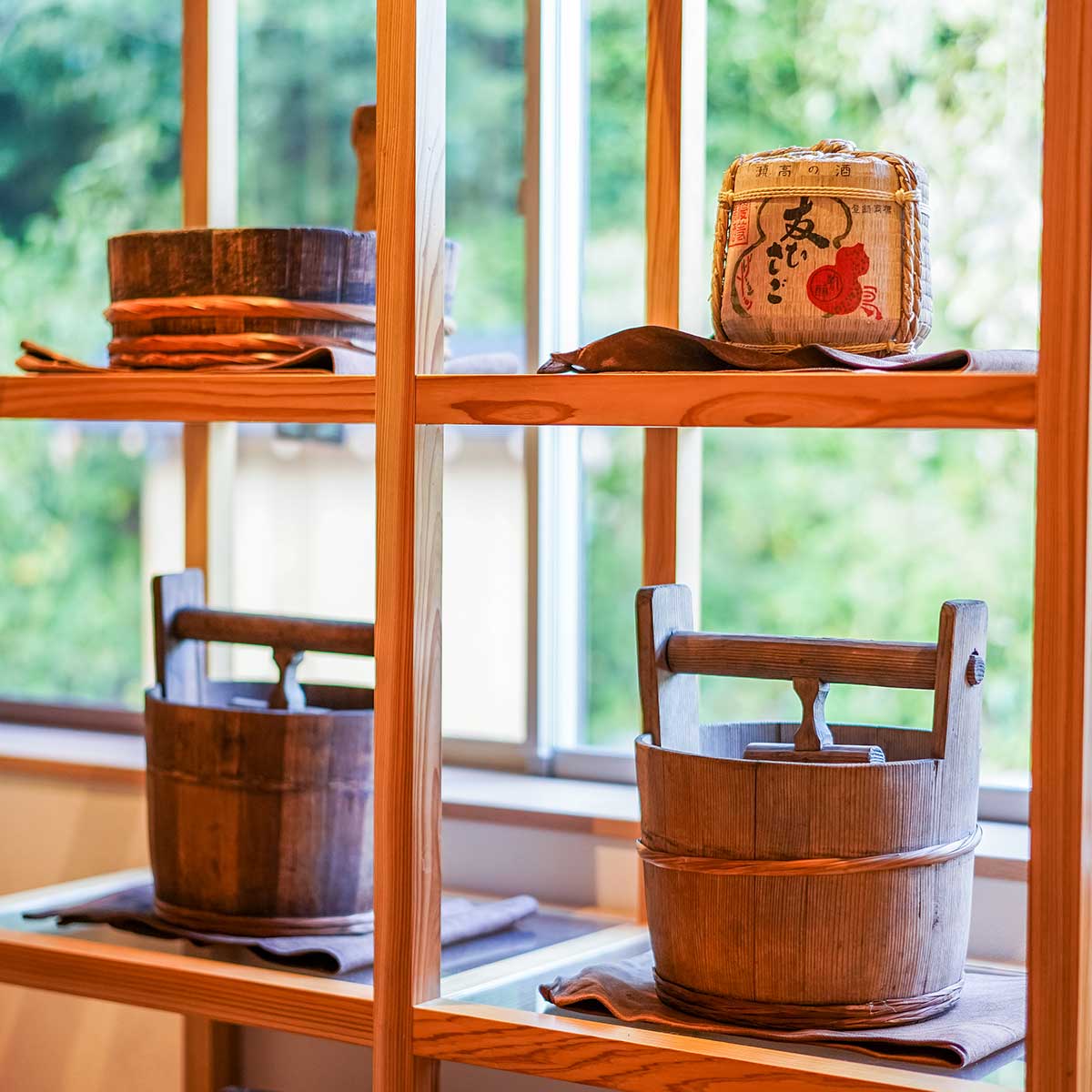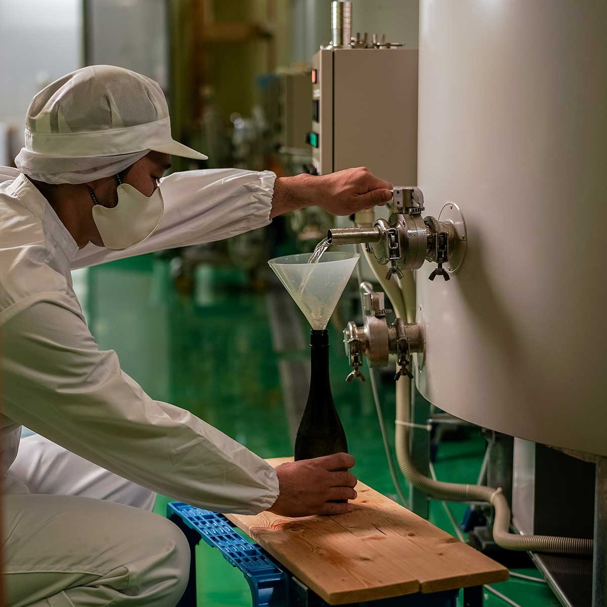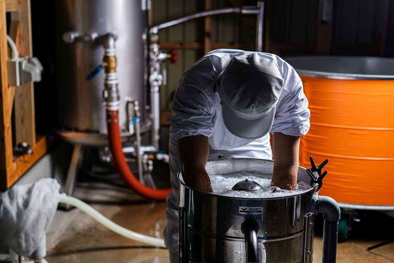 醸造所敷地内にある妙見乃井戸は手つかずの自然に恵まれた湯川山の裾野にある浅井戸で、低温長期醸造に適した軟水が豊富に湧いています。